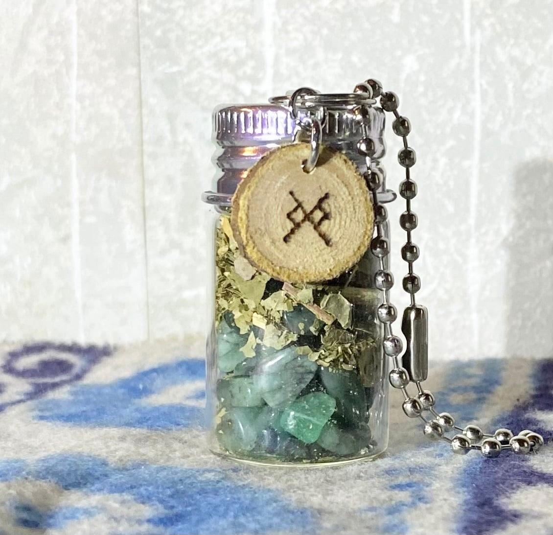 緑の癒し手が選んだルーンにハーブ、天然石を調合して作った守護のミニボトルです。