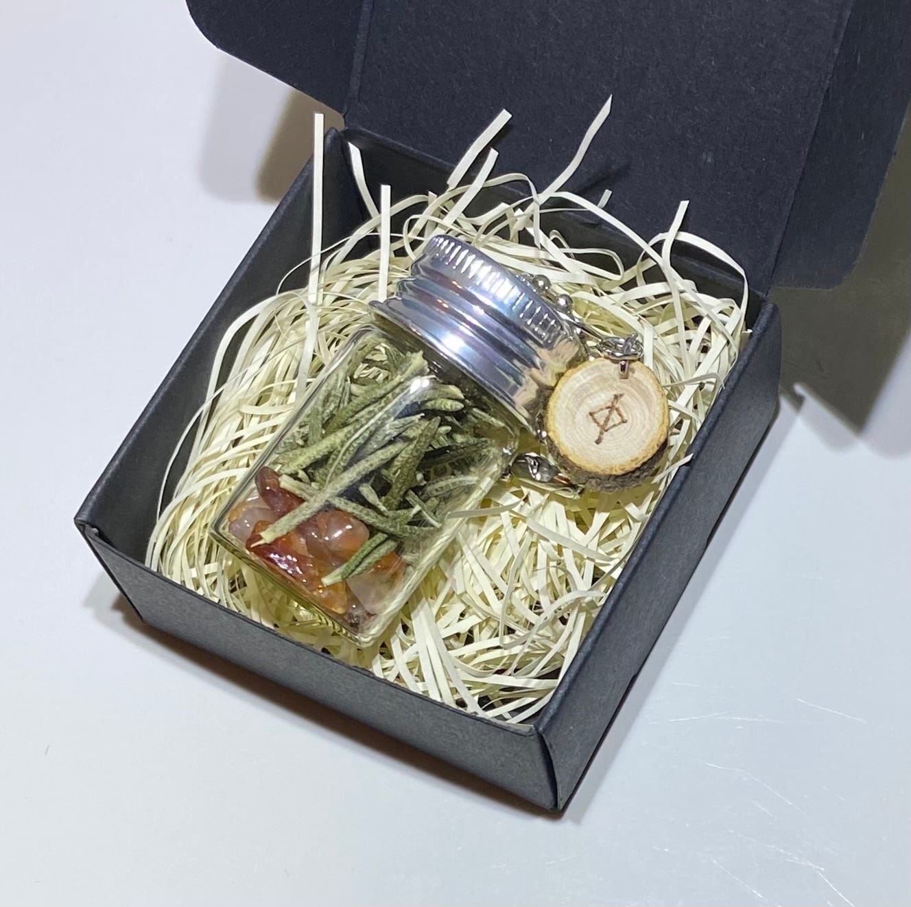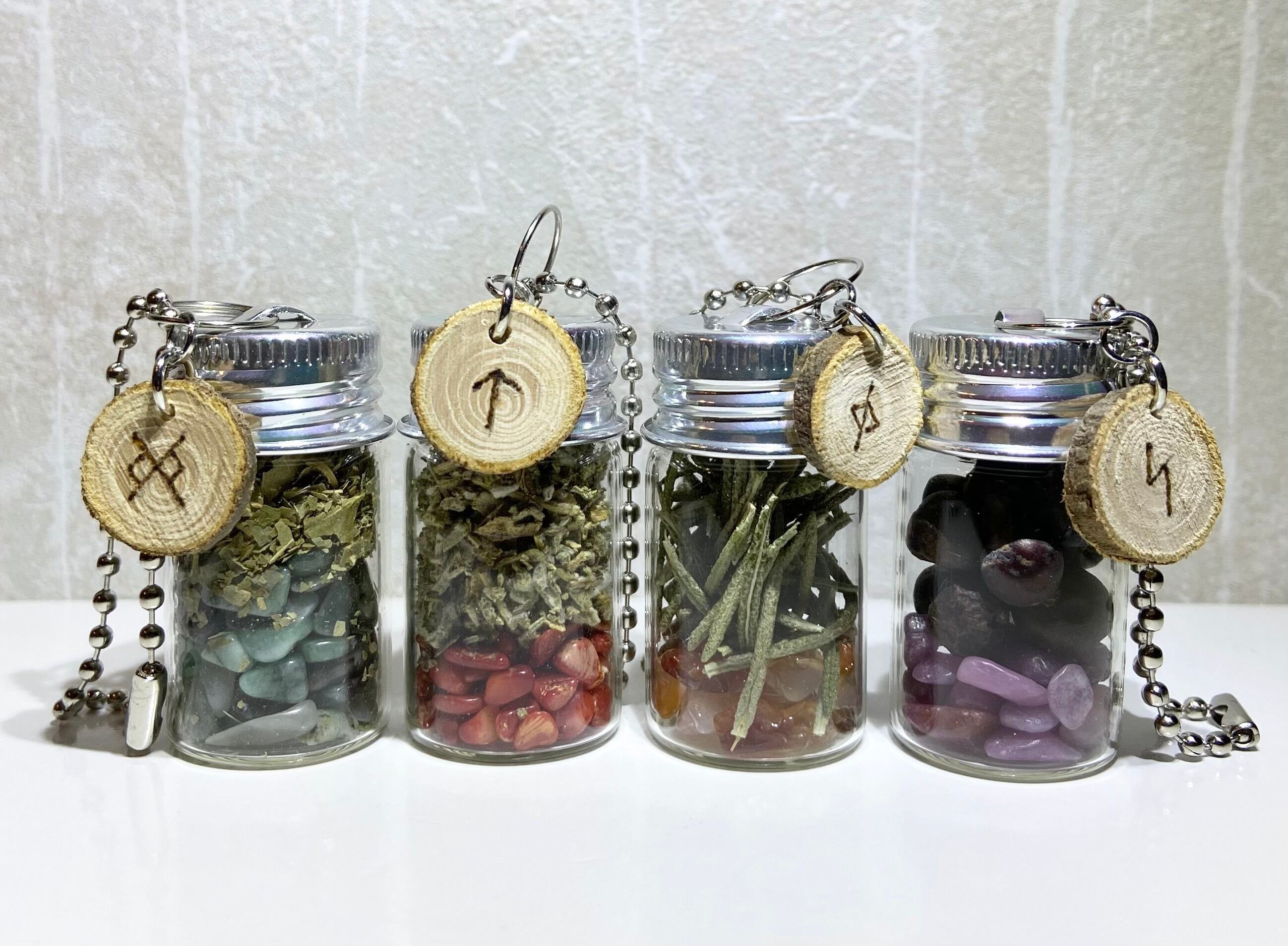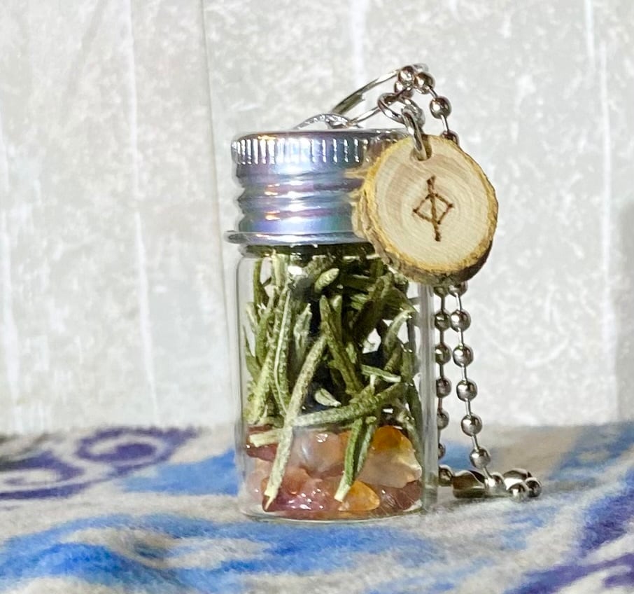 緑の癒し手が選んだルーンにハーブ、天然石を調合して作った守護のミニボトルです。