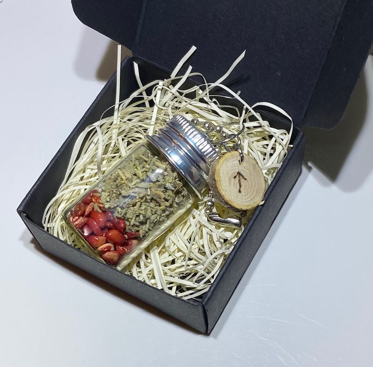 緑の癒し手が選んだルーンにハーブ、天然石を調合して作った守護のミニボトルです。