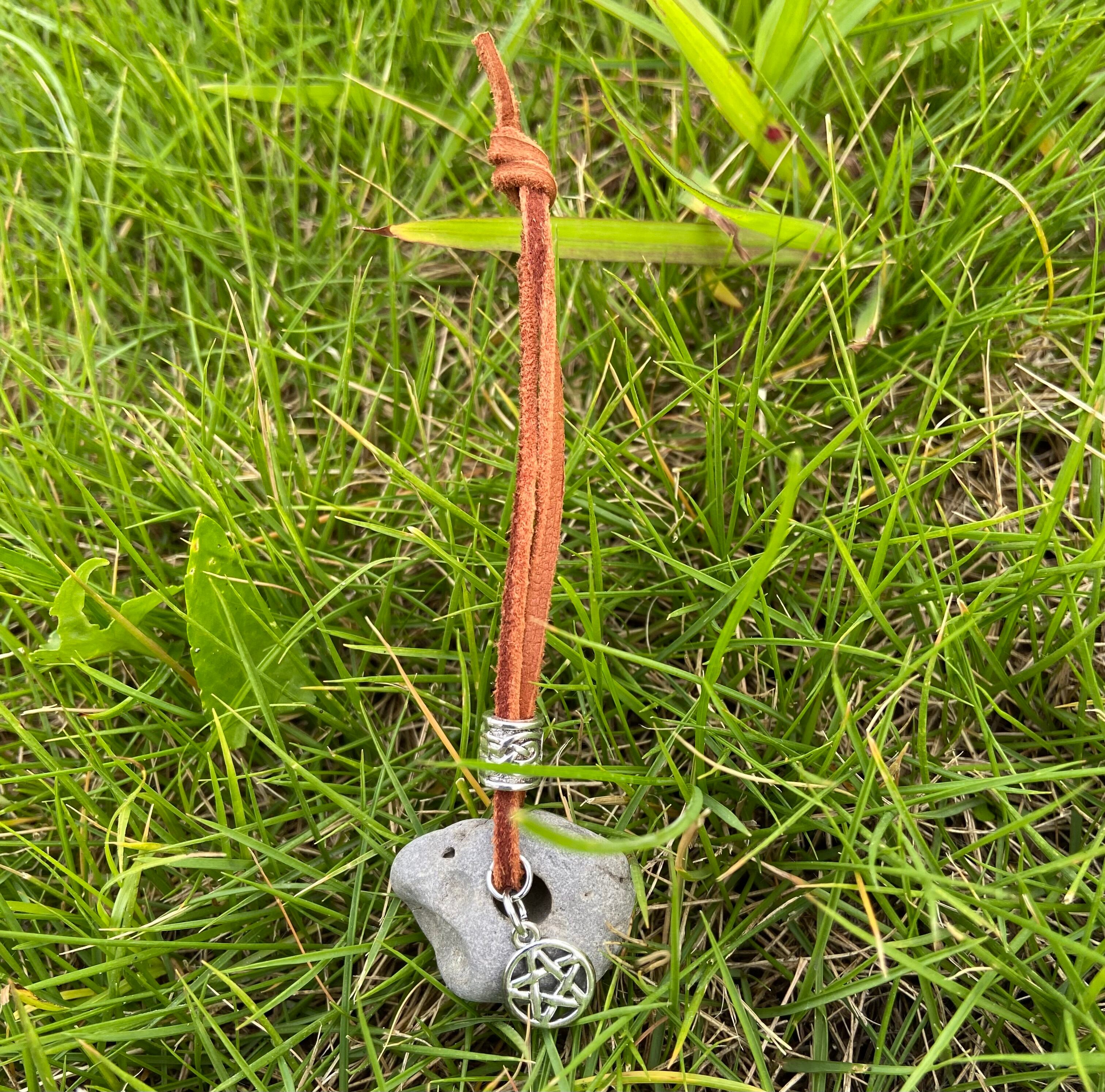アイルランドの沿岸で見つけられた、ハグストーンと呼ばれる風変わりな石をお守りにしました。