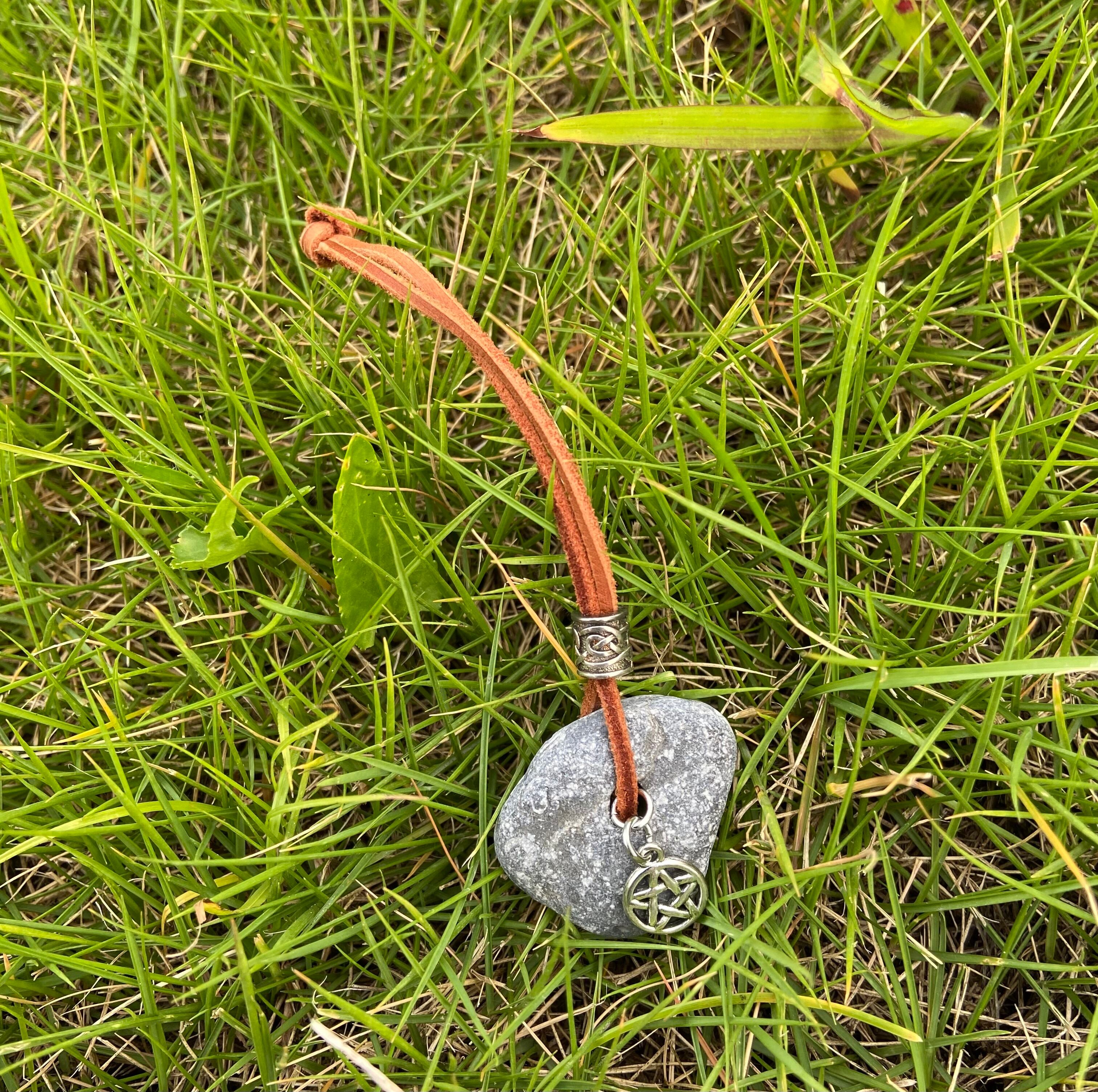 素材 ケルティックビーズ、五芒星チャーム、鹿革