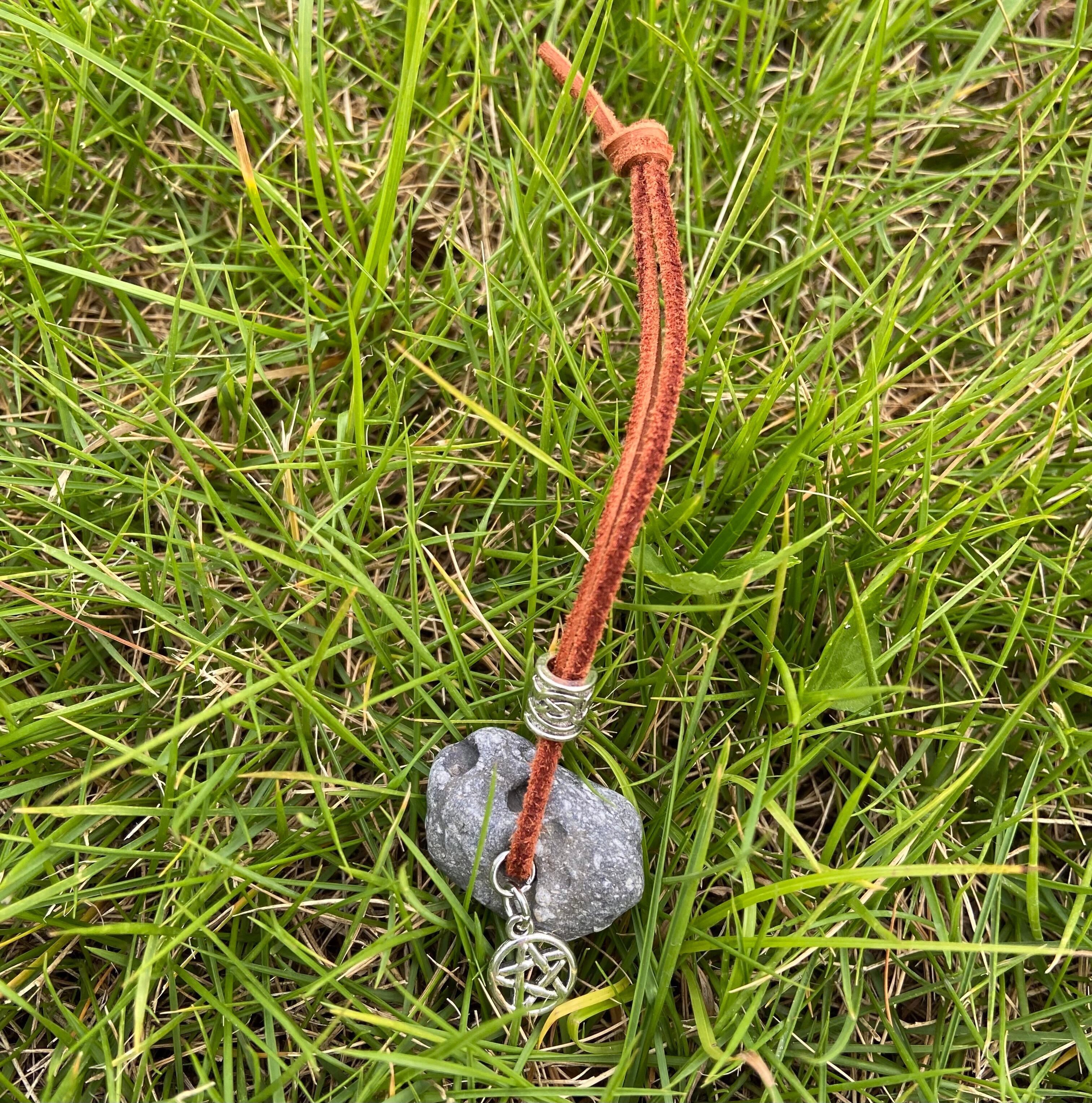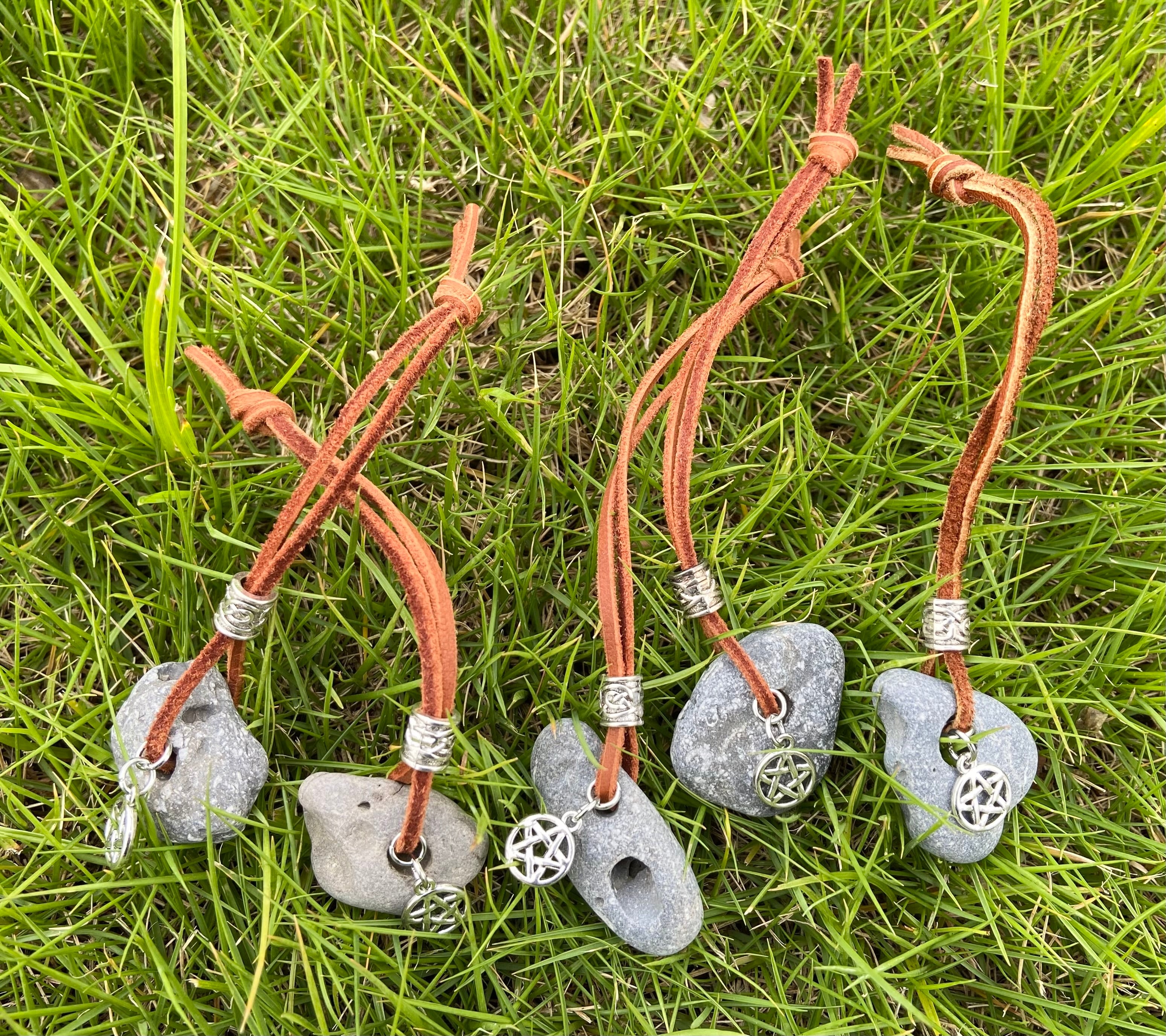 アイルランドの沿岸で見つけられた、ハグストーンと呼ばれる風変わりな石をお守りにしました。